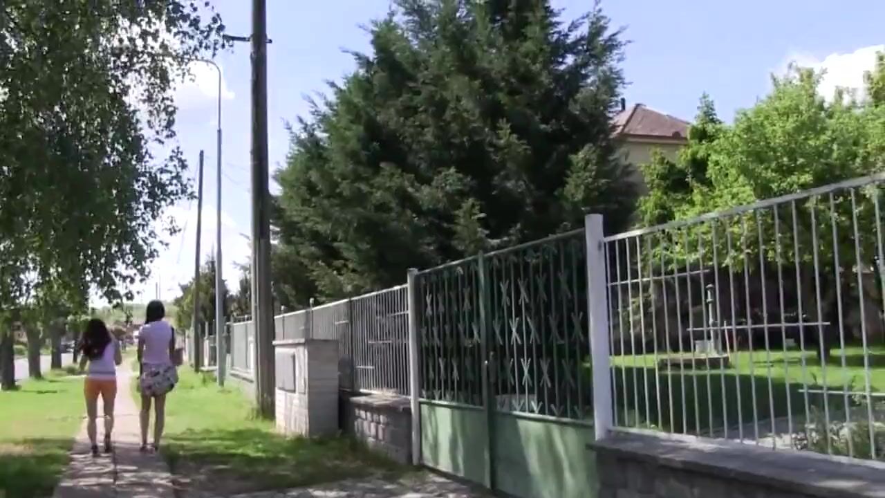 . Two inexperienced brunette girls enjoying themselves in a place in nature