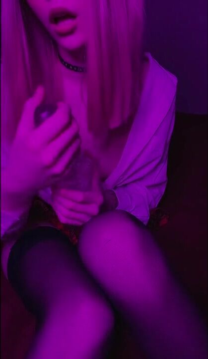. Teen girl 18 years old with pink hair from Poland fucks and sucks a big dildo.