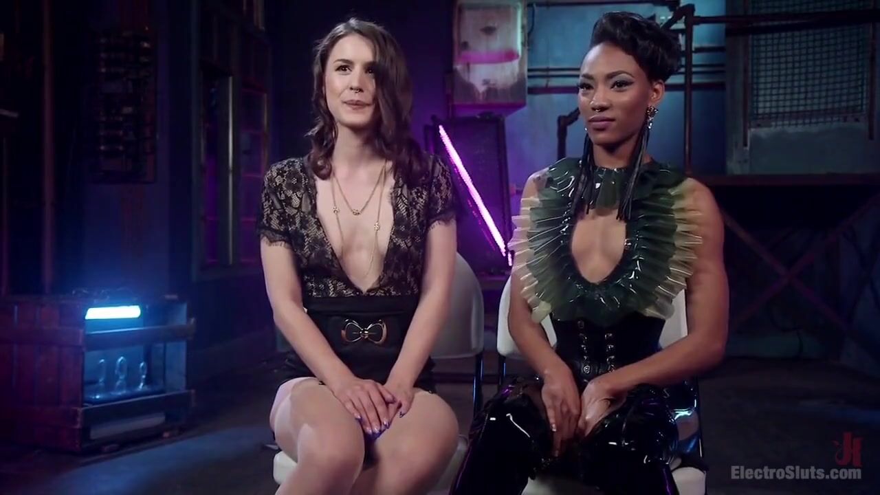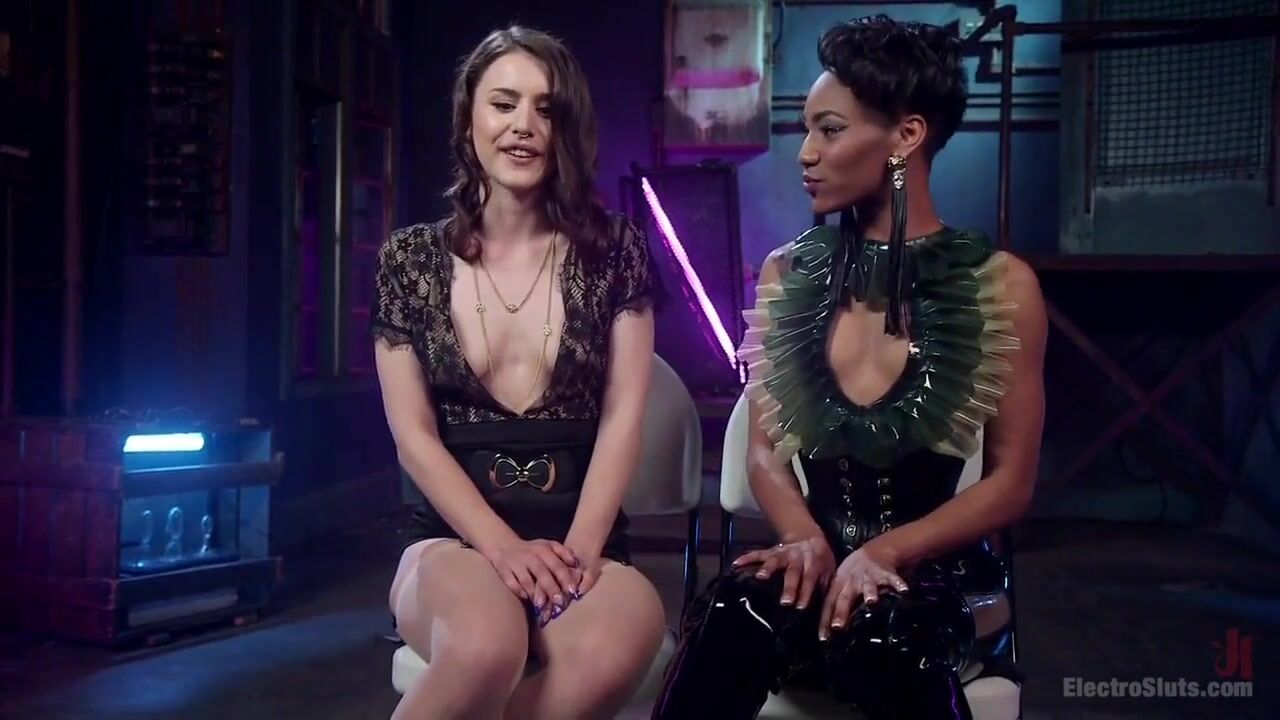 . Katharine Cane submits to Nikki Darling with the cattle prod, zapper, e-stim sticky pads, the violet wand, bondage, face sitting, pussy and anal strap-on fucking, and tons of lesbian orgasms!
